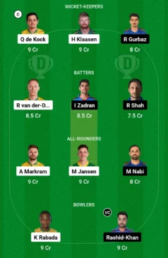 - Wicketkeepers: Quinton de Kock, Heinrich Klaasen, Rahmanullah Gurbaz