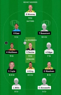 - Batters: Harmanpreet Kaur, Tammy Beaumont
