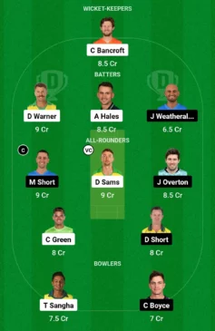 - Batters: Alex Hales, Jake Weatherald, David Warner