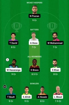 - Bowlers: Trent Boult, Shaheen Afridi, Akeal Hosein, Luke Wood