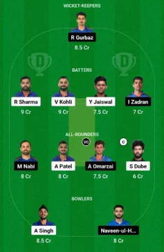 - Batters: Virat Kohli, Rohit Sharma, Yashasvi Jaiswal, Najibullah Zadran