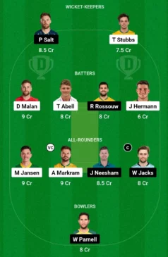 - Batters: Dawid Malan, Tom Abell, Rilee Rossouw, Jordan Hermann