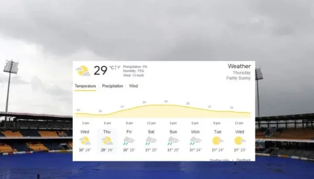 The weather outlook appears promising for the third T20I in Colombo between Sri Lanka and Zimbabwe, with only a 5% chance of rain. Anticipated conditions include a temperature of approximately 29 degrees Celsius and a humidity level of around 75%. Additionally, the forecast suggests a moderate wind speed of 13 kmph.