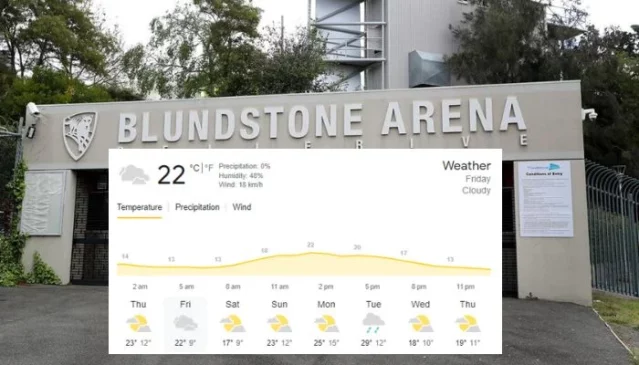 Despite the cloudy weather forecast, there’s a comforting anticipation that the highly anticipated match will proceed smoothly, ensuring an uninterrupted and captivating sporting event. The temperature is expected to be approximately 22 degrees Celsius, accompanied by a gentle breeze of 18 km/hr. Additionally, atmospheric humidity is forecasted to remain moderate at 48%.