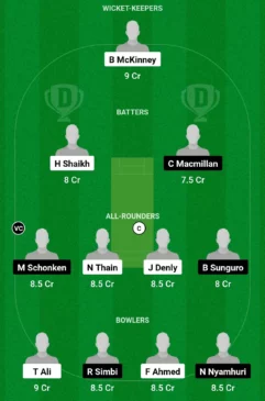 - Bowlers: Tazeem Ali, Newman Myamhuri, Ryan Simbi, Farhan Ahmed