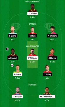 - All-rounders: Andre Russell, Sean Williams, Sunil Narine, Daniel Sams, David Willey