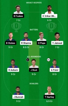- Batters: Rohit Sharma, Ben Stokes, Ollie Pope, Yashasvi Jaiswal