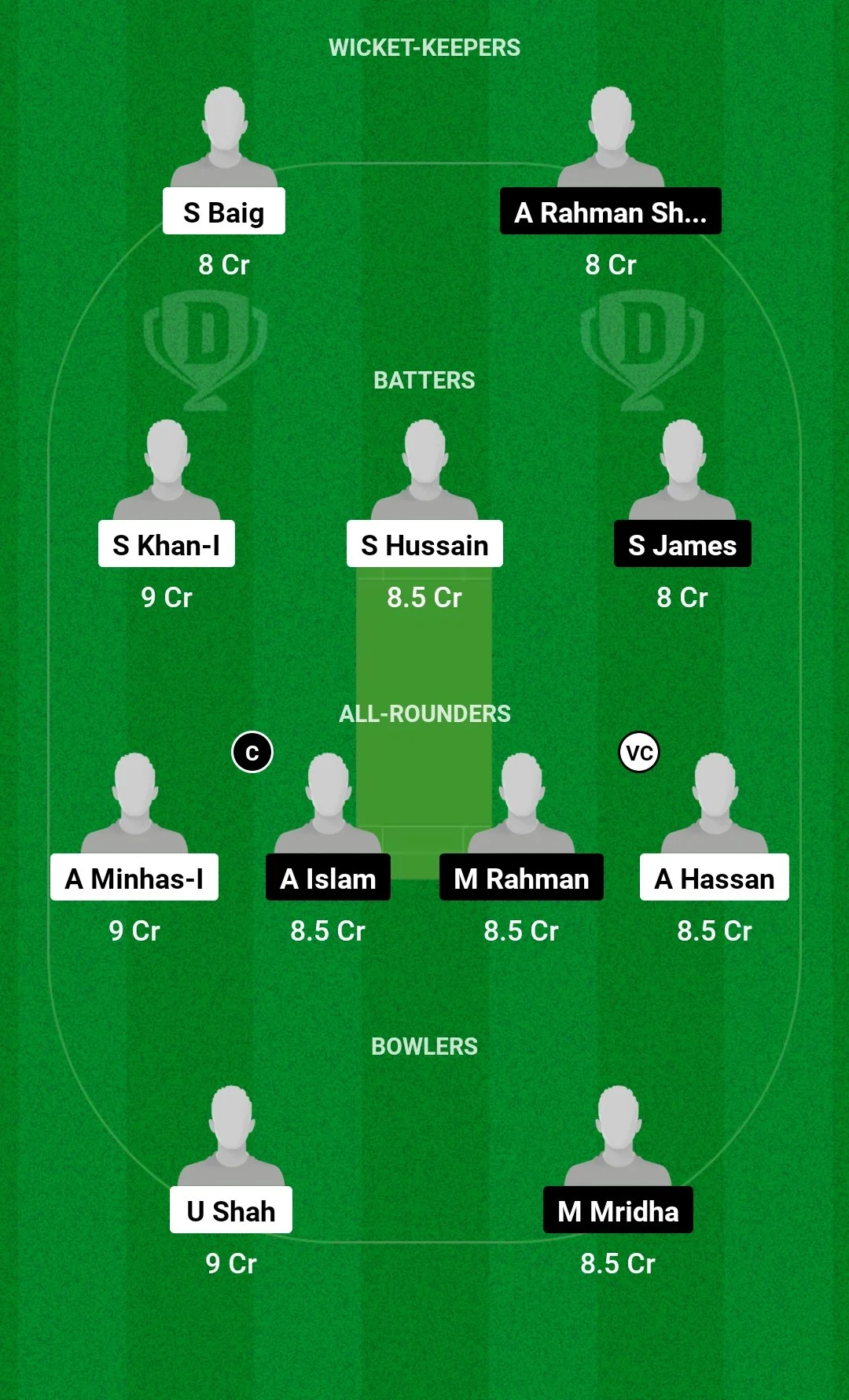 - Wicketkeepers: Saad Baig, Ashiqur Rahman Shibli