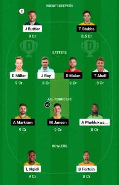 - Batters: David Miller, Jason Roy, Dawid Malan, Tom Abell