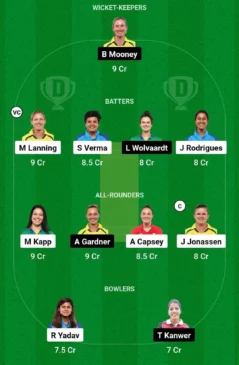 - All-rounders: Marizanne Kapp, Ashleigh Gardner, Alice Capsey, Jess Jonassen