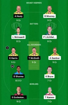 - All-rounders: Grace Harris, Tahil McGrath, Ashleigh Gardner, Deepti Sharma, Kathryn Bryce