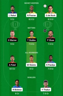 - All-rounders: Axar Patel, Marcus Stoinis, Krunal Pandya