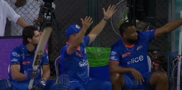 In addition to the on-field action, there was another moment that drew attention when MI’s batting coach Kieron Pollard was involved in a heated exchange with a match official. Pollard, along with MI head coach Mark Boucher and all-rounder Tim David, was seen expressing his dissatisfaction near the MI dugout.