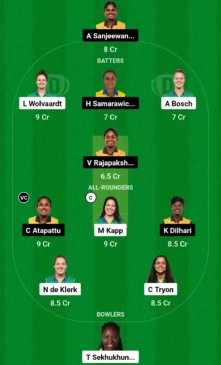 - Batters: Laura Wolvaardt, Harshitha Samarawickrama, Vishmi Gunaratne, Anneke Bosch