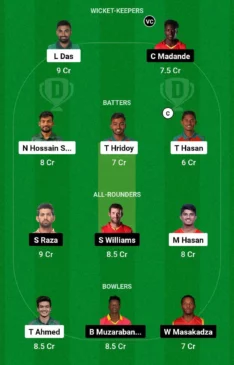 - Bowlers: Taskin Ahmed, Blessing Muzarabani, Wellington Masakadza