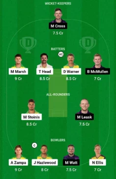 - Bowlers: Adam Zampa, Josh Hazlewood, Mark Watt, Nathan Ellis