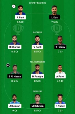 - Batters: Virat Kohli, Towhid Hridoy, Rohit Sharma