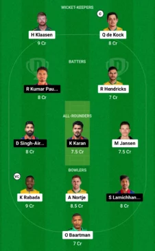 - Bowlers: Sandeep Lamichchane, Anirch Nortje, Kagiso Rabada, Ottneil Baartman