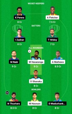 - All-rounders: Wanindu Hasranga, Angelo Mathews, Mohammad Nabi, Dasun Shanaka