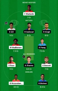 - Bowlers: Blessing Muzarabani, Ravi Bishnoi