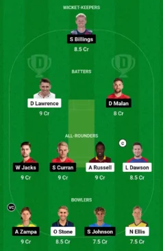 - All-rounders: Will Jacks, Sam Curran, Andre Russell, Liam Dawson