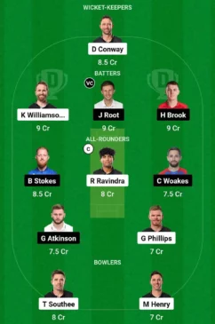 - All-rounders: Ben Stokes, Rachin Ravindra, Chris Woakes, Gus Atkinson, Glenn Phillips