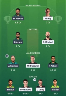 - Batters: Babar Azam, Daryl Mitchell