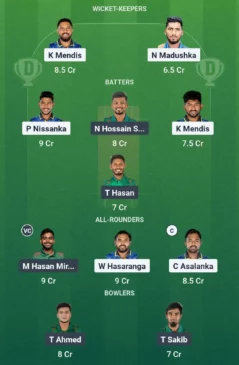 SL vs BAN Dream11 Prediction Captain and Vice Captain: