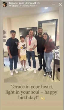 Vikas posted a touching birthday story on Instagram, featuring a candid picture of Virat alongside his wife, Bollywood actress Anushka Sharma. The post reflected the close bond within the Kohli family, celebrating the batter not only as a cricketing icon but also as a loving husband, father, and son.