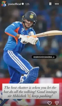 Abhishek, who had struggled earlier in the tournament, rediscovered his touch with a blazing 55 off just 30 balls. His innings, which included four boundaries and four towering sixes, provided the early momentum India desperately needed in this must-win clash. Yuvraj, a long-time mentor to the young left-hander, was quick to notice the poise behind the performance. Sharing a shot of Sharma mid-stroke, Yuvraj noted: “The best chatter is when you let the bat do all the talking! Good innings sir Abhishek keep pushing!”