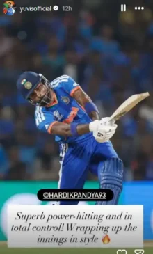 Pandya reinforced his reputation as one of the world’s premier finishers, hammering an unbeaten 50 off only 23 deliveries. His explosive knock—featuring four sixes—helped India post a massive 256/4, the highest total of the tournament thus far and the second-highest in T20 World Cup history. Recognizing Pandya’s ability to dominate the final overs, Yuvraj posted an image of the all-rounder connecting with a powerful hit, captioning it: “Superb power-hitting and in total control! Wrapping up the innings in style”